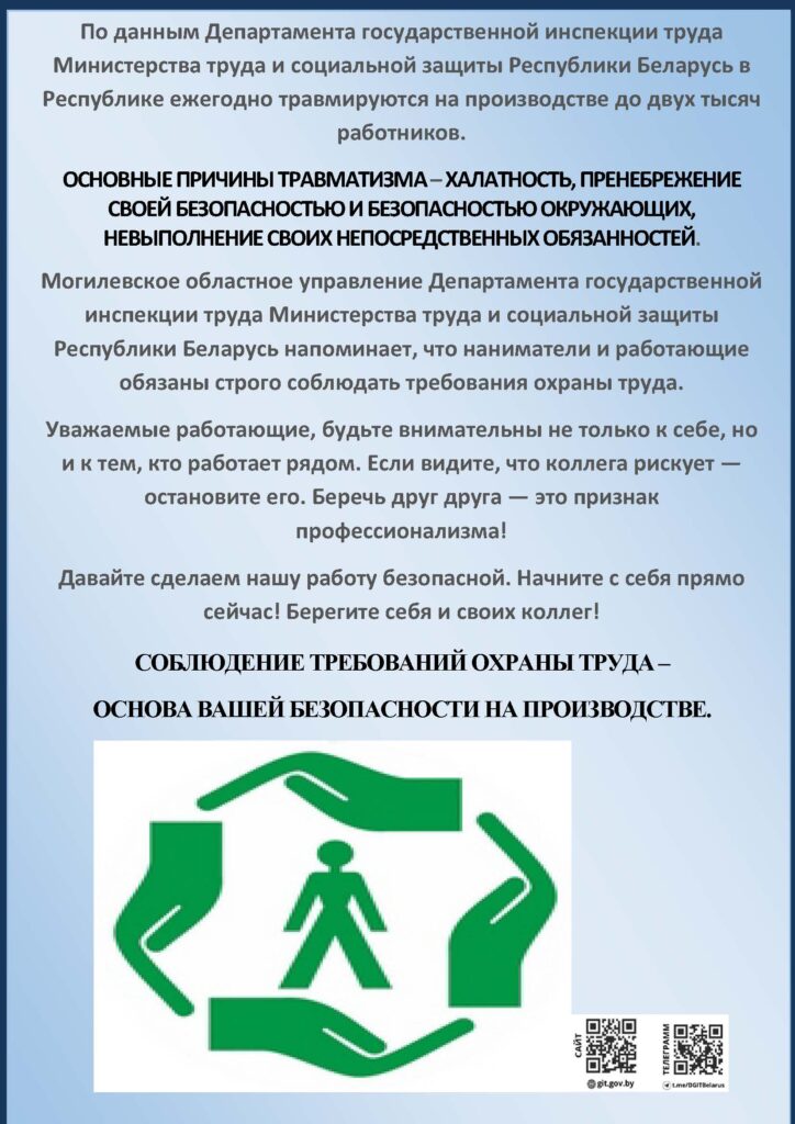 По данным Департамента государственной инспекции труда Министерства труда и социальной защиты Республики Беларусь в Республике ежегодно травмируются на производстве до двух тысяч работников